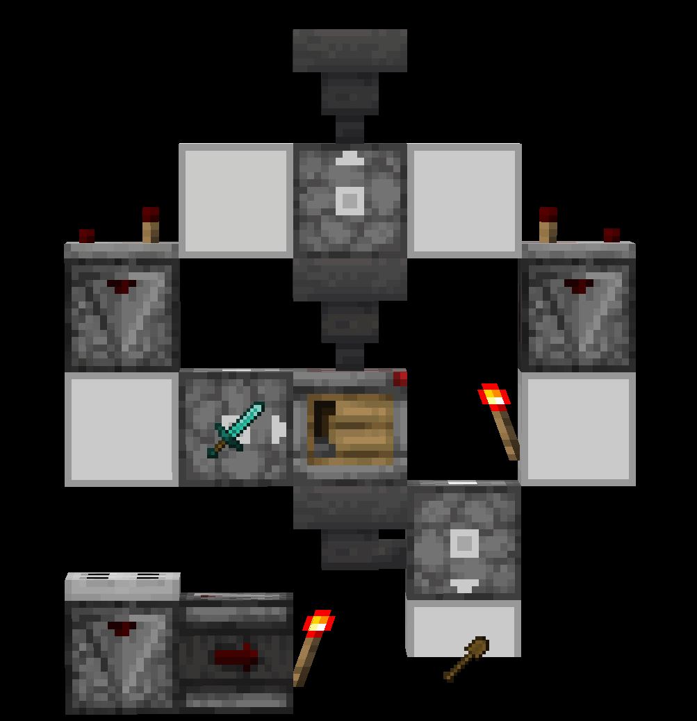 A voider attempts to craft an inputted nonstackable with a tool (aka an item with a durability bar) stored inside of the voider. If the inputted item matches the set tool (shown as a diamond sword in the image), they will be crafted together into a single tool using the crafting repair mechanic, destructively sorting it out. If the craft fails, the inputted item is removed from the crafter in time for the next input.
